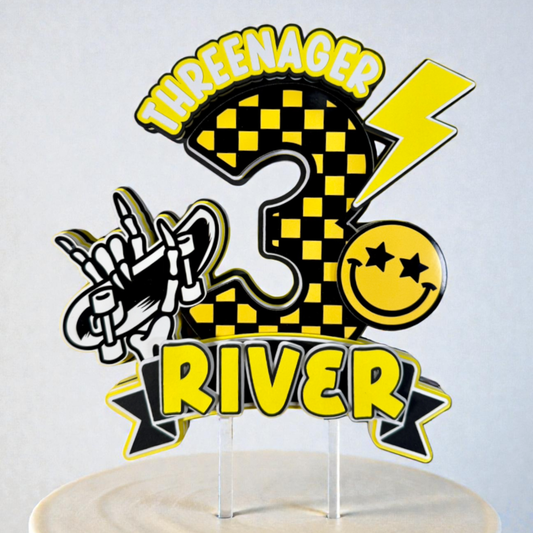 Personalized Threenager Cake Topper | Rockstar 3rd Birthday Party Centerpiece