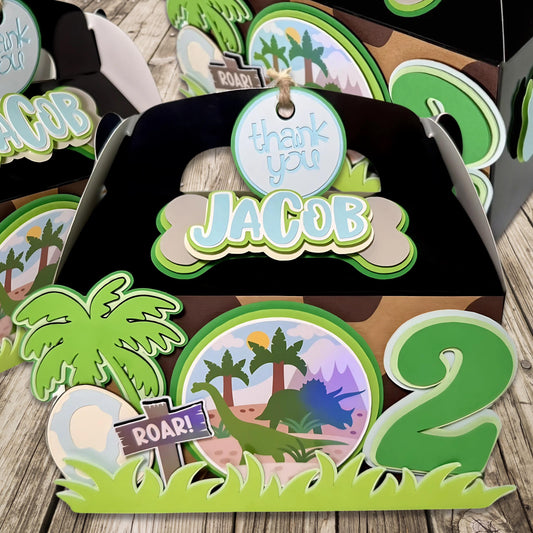 Dinosaur Birthday Party Favor Boxes | Custom Name & Age