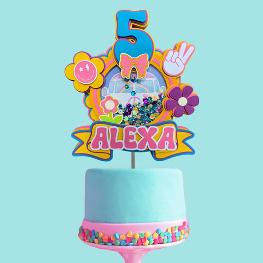 Personalized Groovy Shaker Cake Topper | Retro Hippie Birthday Decoration