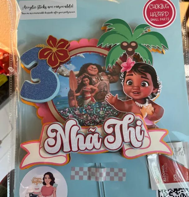 Bring a little island magic to your child’s celebration with this Moana-inspired custom birthday cake topper. Bright, layered, and handcrafted with love, it’s the perfect finishing touch for any tropical, luau, or ocean-themed party.